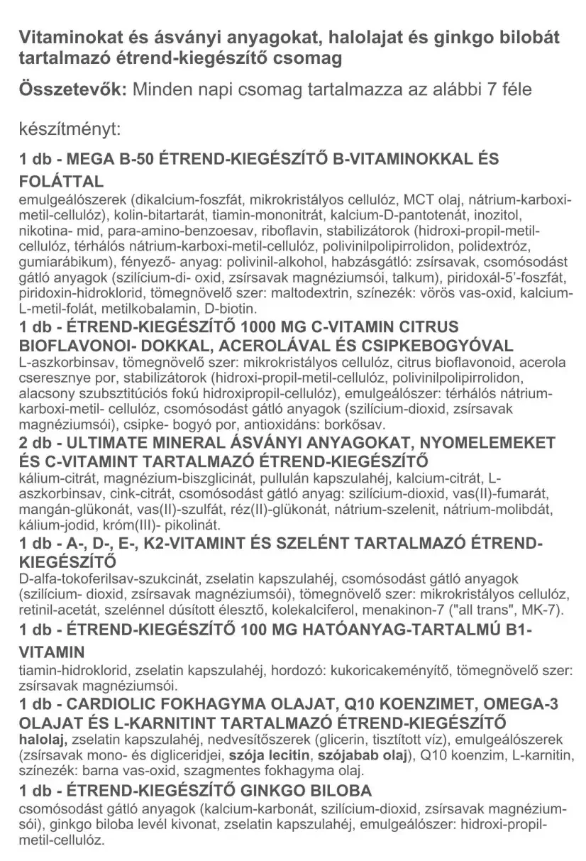 A specifikációban szereplő adatok a napi adagra (1 csomag) vonatkoznak.