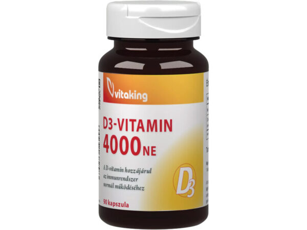A Vitaking D-4000 IU vitamin magas hatóanyag-tartalmú D3-vitamint (4000 NE / 100 µg kolekalciferol) biztosít a csontozat, az izomműködés és az immunrendszer normál működésének támogatására.
