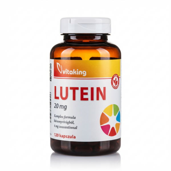 A Vitaking Lutein + Zeaxantin kapszula növényi eredetű, vegán étrend-kiegészítő, amely nagy dózisban tartalmaz két fontos karotinoidot: luteint és zeaxantint. Ezek a vegyületek természetes módon is jelen vannak a szemben, különösen a retina központi részén, a sárgafoltban.